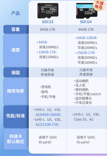 大厂品质有保障值得信赖,尤为看好的售后质保是终身质保只换不修,与大疆设备有测试兼容性好,传输数据速度快,256G存储容量够用
