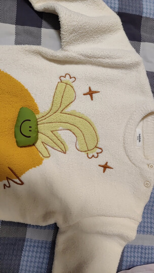 这个衣服太可怕了,毛茸茸的小衣服,厚厚的暖暖的宝宝非常的喜欢,颜色也很可爱。前面有一个立体的小图案,宝宝一直在摸,很喜欢