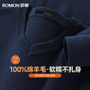 罗蒙【100%绵羊毛】纯羊毛衫男士春秋冬季薄款修身V领套头装打底毛衣