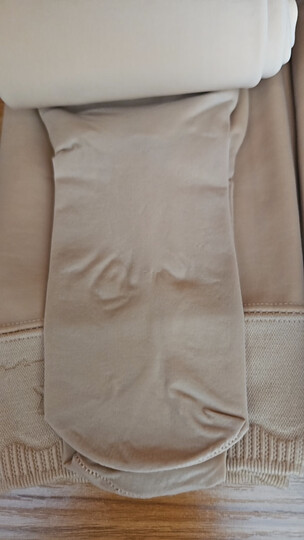 厚度适中,抗冻的大概可以穿到10-15度。收到直接机洗了,结果勾丝了,大家要洗一定要套袋。颜色嘛,肉色袜子,只能露一截小腿
