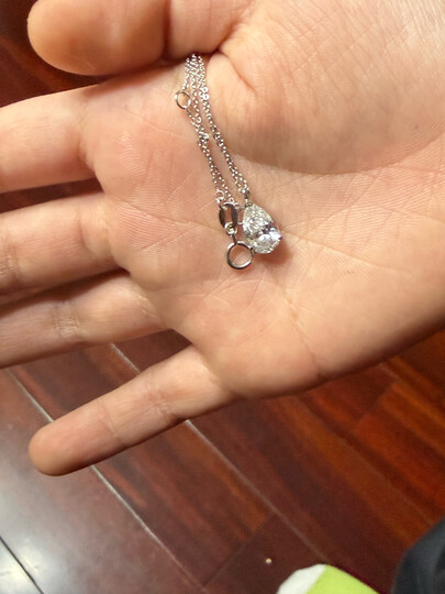 个头确实大,比以前结婚时买的天然钻石项链大多了,结婚二十多年了,这次买个大一点的送老婆作为结婚纪念礼物,她自己挑的这款,收到马上就戴上了,链子长短还可以自由调节的,非常满意,她开心就好,值了