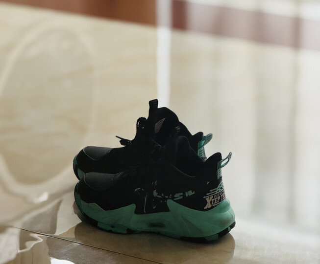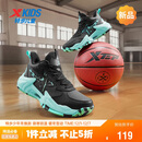 特步童鞋儿童风猎系带篮球鞋皮革耐脏面料运动鞋 黑/极光绿 33