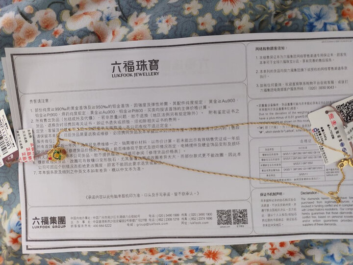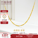 六福珠宝 18K金黄色细水波纹链彩金项链女款素链 L18TBKN0022Y 43cm-总重0.86克专用扣