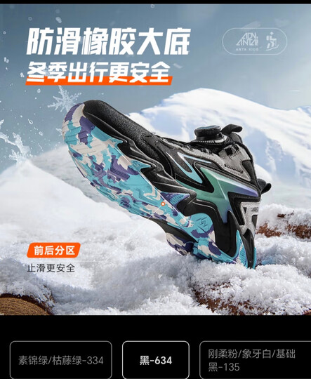 安踏儿童男女大童棉鞋2025冬季舒适保暖儿童运动加绒二棉鞋A12446933H