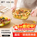 康宁(VISIONS)餐具晶炫玻璃烤盘微波炉烤箱专用器皿水果盘蒸鱼家用盘子方形2L
