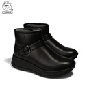 懒洋洋冬季软底舒适中老年真皮保暖厚底羊毛靴子妈妈防寒靴09031E 黑色 37