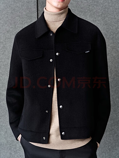 GXG男装 商场同款黑色全羊毛通勤短款大衣 黑色 175/L