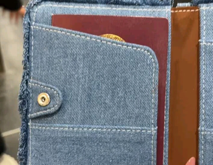 Tagi.《苹苹安安》护照夹砰砰珍珠证件收纳包卡包零钱包圣诞礼物-牛仔