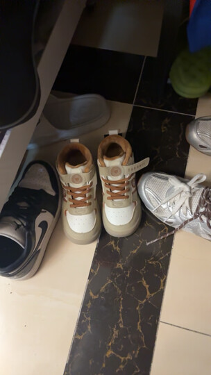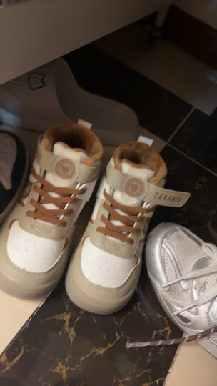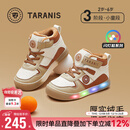 泰兰尼斯冬季男童加绒保暖发光休闲鞋防滑软底儿童闪灯鞋板鞋白/杏色30