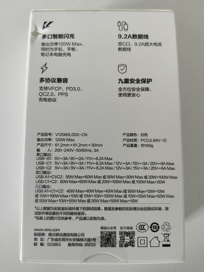vivo iQOO120W三口闪充套装多协议兼容vivo充电器X300充电器X200充电器笔记本电脑充电器适用华为小米