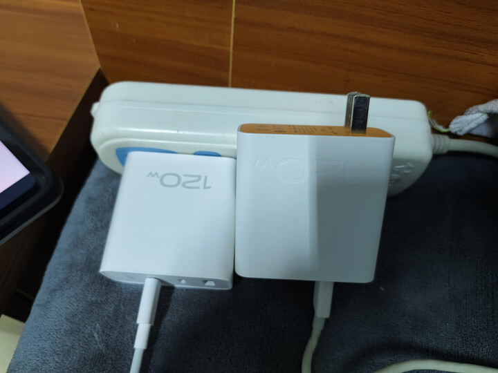我手机用的iQOOneo8,平板是VIVOPad5,手机电量20%,平板电量50%,开始双口充电。简单总结一下,优点:插头可折叠,携带方便,三口可以同时给多个设备充电。缺点:插拔时重新连接;充电功率刚插上挺快,但是两个一起冲散热就跟不上了,功率很快就降下来了,限速严重,不如单口的稳定,更别说三个口一起充了;而且我把手机拔开,平板的充电功率也不自动上升。总之三口就是方便点,可以一起充,但是追求充电速度的话,不如配两个120W单口。