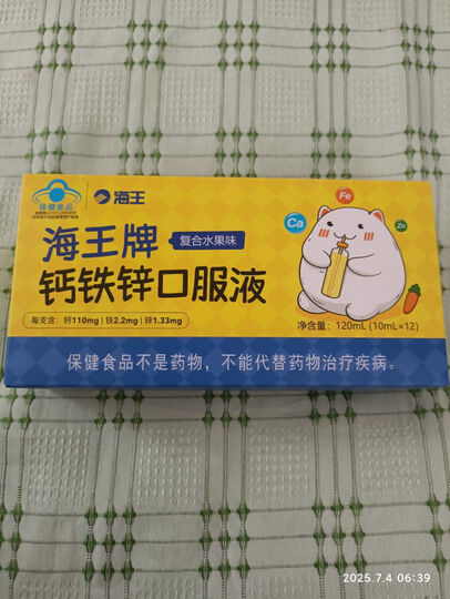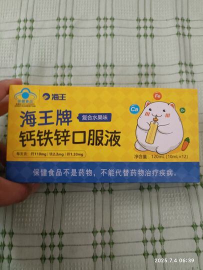 包装精致,独立方便,健康安全。大药厂出品,值得信赖。市面上钙铁锌补充剂为众多,容易挑花眼。买买试喝,比葡萄糖酸锌口服液甜度低,口感好些。这种三种元素一起补充的社区医院都没有,口服液喝着也方便。效果暂时看不出,不过没有不舒服或者特别腥的味道。保健品就这样,图个心理安慰,价格美丽,希望有效