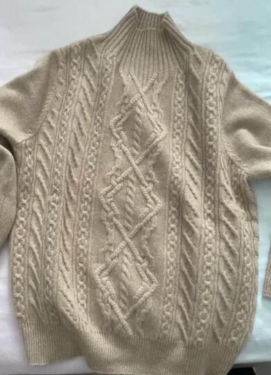 珍贝【售完无补】加厚纯羊绒衫女秋冬新款高领绞花纯色针织衫保暖毛衣 自然色 XL XL/(110码)