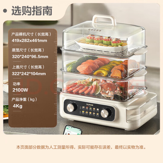 苏泊尔(SUPOR)电蒸锅 24L三层大容量电热锅 家用多功能电蒸箱 加长蒸屉蒸鱼多用途锅ZN32FK995