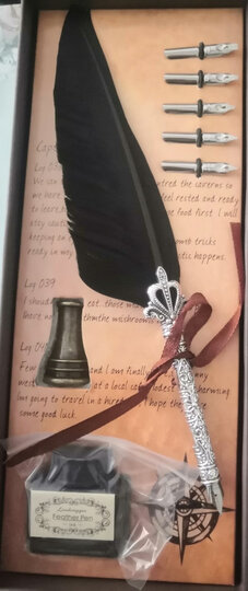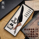 欧式复古英伦羽毛笔钢笔礼盒学生用蘸水笔哈利哥特体英文书法练字实用礼物送男女老师同学韵轩创意小礼品 皇冠羽毛笔8件套--黑 ++清欢礼袋