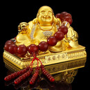 车咔咔汽车香水摆件装饰品合金弥勒佛像车载车内用元宝卧佛香水座车用品 【全金属大金佛】+红玛瑙转运珠