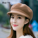佰薏 帽子女士韩版秋冬季羊毛呢贝雷帽英伦气质时尚百搭鸭舌八角礼帽 BLM-41卡其色 可调节(54-59cm)