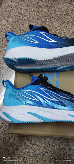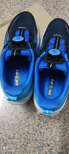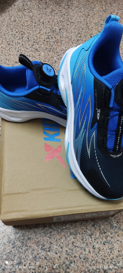 特步(XTEP)儿童运动鞋燚系列透气潮流旋钮扣缓震跑鞋 黑/碧湖蓝/普鲁士蓝 38