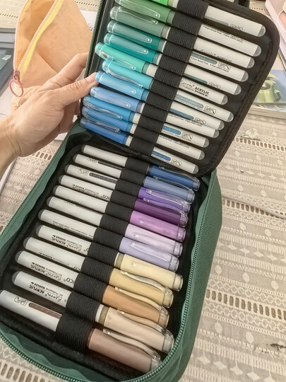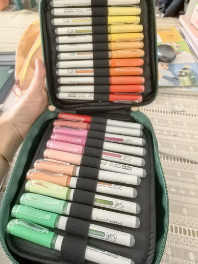 还是丙烯马克笔好用,不会透纸,72色鲜艳的颜色,给爱画画的孩子用,孩子太喜欢了,这颜色大人都喜欢的。有两只出水不好的,已经给重新发货了。