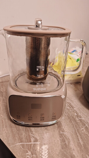 苏泊尔(SUPOR)全玻璃养生壶煮茶壶1L迷你养生杯煮茶器花茶壶 恒温壶母婴级 保温烧水壶316L带滤网0胶水SW-10Y08Q