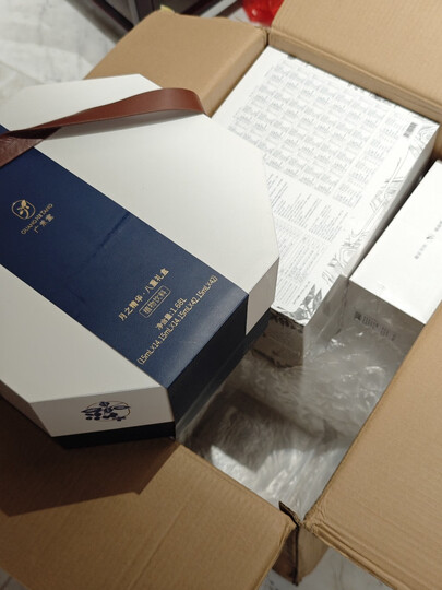 包装的很板扎,很重一大盒,预产期还没到,不知道里面怎么样,看着这个礼盒挺高级的,送的黑芝麻油看着和小瓶红酒一样,很高级的外包装,等月子后再来评价