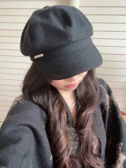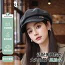 七色纺贝雷帽女秋冬季帽子女八角帽女士报童画家帽鸭舌贝雷帽 黑色