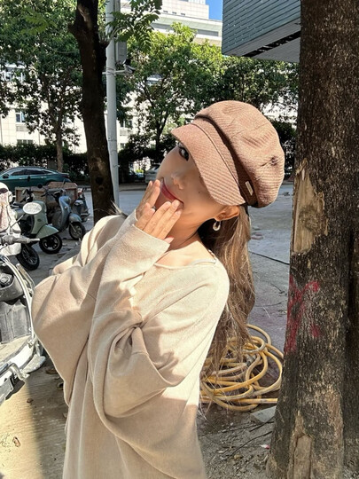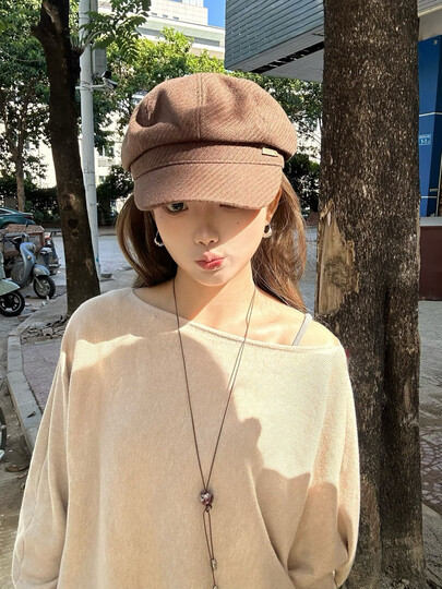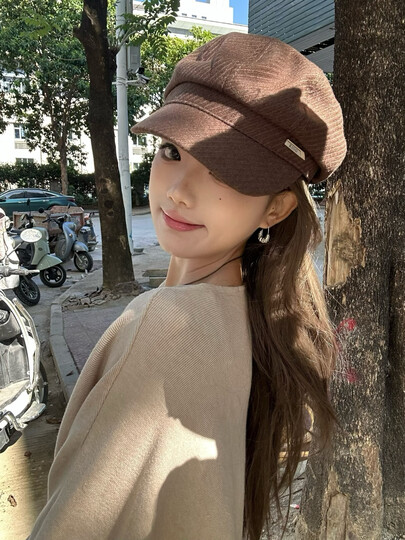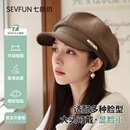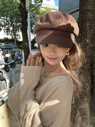 七色纺贝雷帽女秋冬季帽子女八角帽女士报童画家帽鸭舌贝雷帽 咖啡色