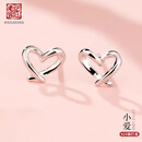 老银匠s925银爱心耳钉银养耳洞送女友情人节礼物心形通勤简约银耳饰女士 耳钉(含一对银耳堵)不含证书