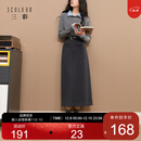 三彩2025冬季新款通勤半身裙直筒裙开叉长裙简约Z