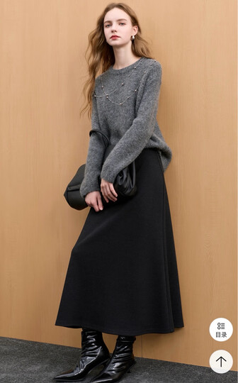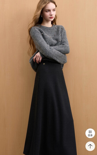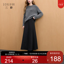 三彩2025冬季新款简约优雅松紧腰半身裙气质通勤A字裙长裙M