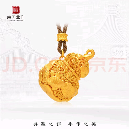 京工美作古法黄金吊坠足金金荷花丝葫芦吊坠项链妈妈生日礼物送老婆43.68g