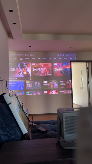 第一台投影仪,很不错呀。色彩,音效各方面都很舒适。只是在家里仅有的白墙上试看也觉得OK 外形外观:高大上 投影亮度:白天,半开窗帘,也很清晰 音质音效:很好 操作难易:简单