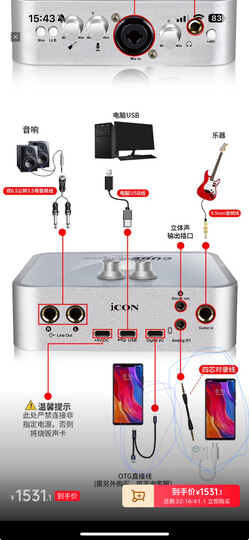 艾肯iCON 2nano外置声卡+铁三角麦克风AT2020直播套餐主播直播喊麦手机电脑专业录音k歌声卡设备