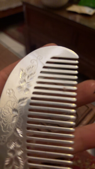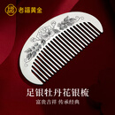 老福黄金999足银梳子发梳手工錾刻纯银送妈妈雪花银梳 牡丹花/44克