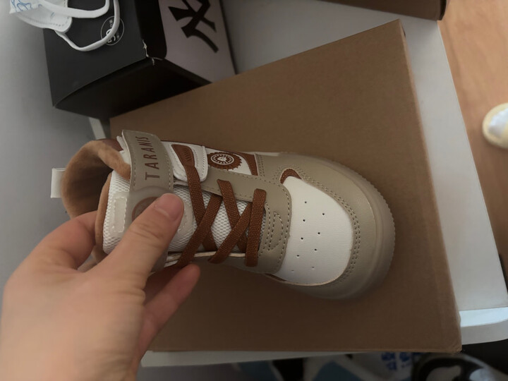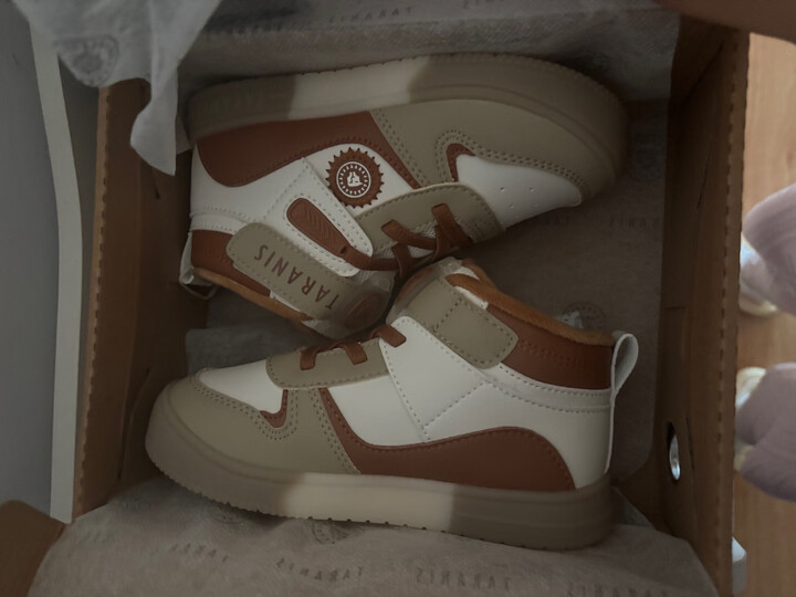 一次性买了两双泰兰尼斯,一是品质肯定不会出错,另一双低帮方便幼儿园,宝宝自己穿脱方便,这一双高帮自己平时带着户外穿,冬天保暖也好看