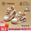 泰兰尼斯冬季男童加绒保暖发光休闲鞋防滑软底儿童闪灯鞋板鞋白/杏色29