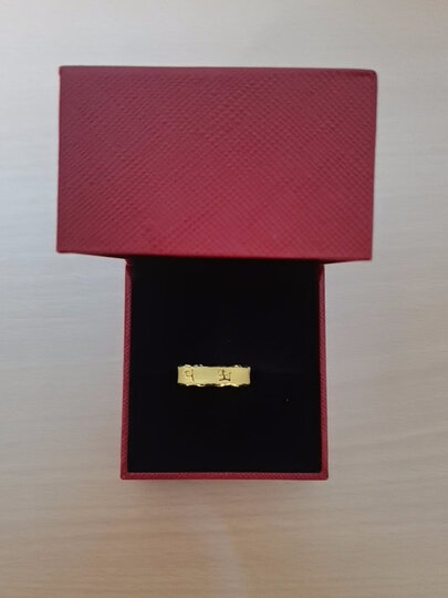 这个品牌的戒指是第一次购买,当时我是第一眼就喜欢上了这个六字真言的戒指,寓意非常好,样子也非常大气,而且发货非常快,两天就到了,也很惊喜,商品也是跟图片一致,非常满意,下次还会继续购买的。