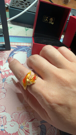 汉秀黄金戒指足金六字箴言男女款情侣对戒3D硬金指环生日送女友送老婆 17号(金重约:2.8克)预售