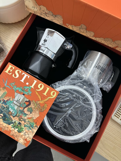 比乐蒂(Bialetti)【咖啡壶礼盒】摩卡壶礼盒蒸汽时代手冲咖啡壶套装意式浓缩咖啡机 经典双阀款(2杯份+咖啡杯)100ml 4件套礼盒