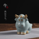 源韵 汝窑茶宠摆件精品 手工功夫茶具创意茶玩十二生肖狗动物开片可养 牛
