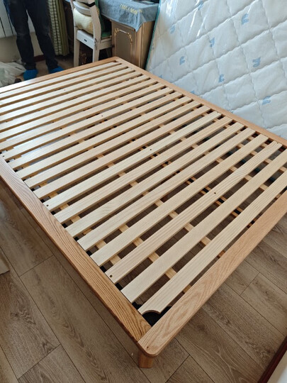 源氏木语 实木榻榻床简约现代实木床北欧橡木主卧双人床多用小户型功能床 原木色高铺无床头单床 1500mm*2000mm