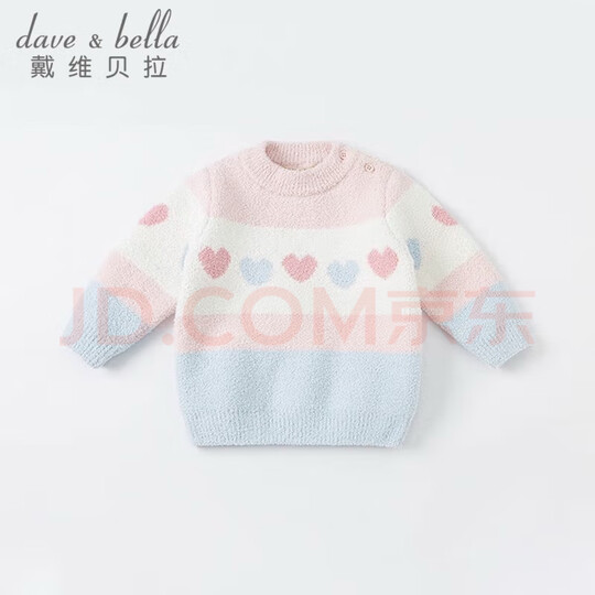 戴维贝拉(DAVE&BELLA)女童毛衣半边绒儿童针织衫女秋季幼儿线衣小童秋装幼童线衫打底衫 粉色 100 cm(建议身高90-100cm)