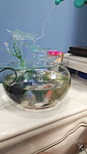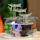 点道(DIANDAO)创意桌面小型玻璃家用鱼缸流水器喷泉客厅电视柜装饰摆件生日礼物 TT99049鱼缸:长25宽24高23CM