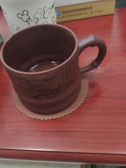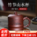 古悦堂 紫砂杯宜兴名家手工刻绘紫砂办公杯泡茶杯 竹节山水杯 底槽青款