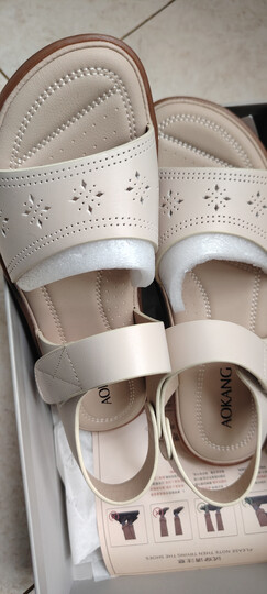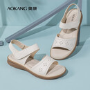 奥康官方女鞋 妈妈鞋夏季新款牛皮百搭舒适平底一字带凉鞋女 米色1224821025 36