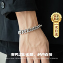 AHK古巴手链男士钛钢手环情侣潮流首饰纪念日生日礼物送男友老公 经典时尚【银色18cm】+钛钢升级