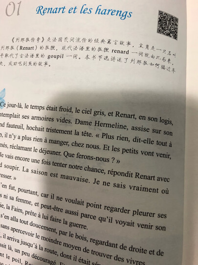 好棒的一本法语中文对照书,每一篇法语开头都有一个二维码,用微信扫一下就会出来法语的音频链接。音频音质也很好,下一页还会有中文对照,很适合对法语感兴趣的小伙伴。