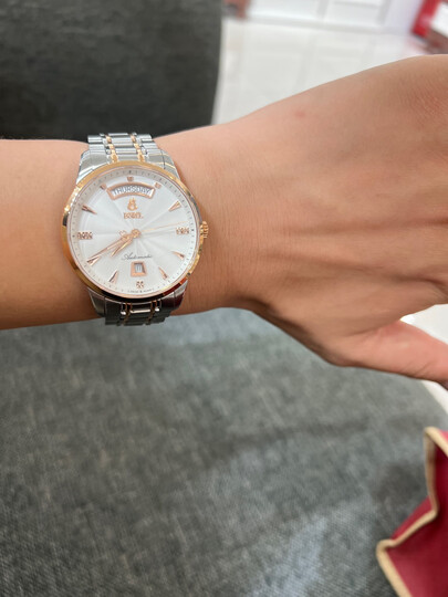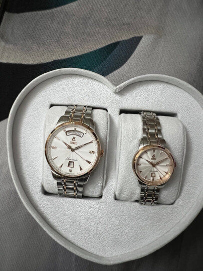 看了很久了,结婚周年庆,情侣手表不二之选,老婆非常喜欢,高端大气上档次,带上手感很好,很漂亮,值得拥有!