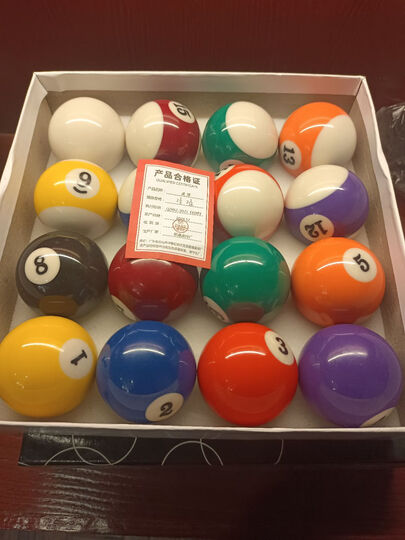 台球收到了,看着光泽啊什么的都不错,买的时候比了比价格,同档次的球里面算是便宜的,另外还附送了三脚架和巧克粉,不错!好评!