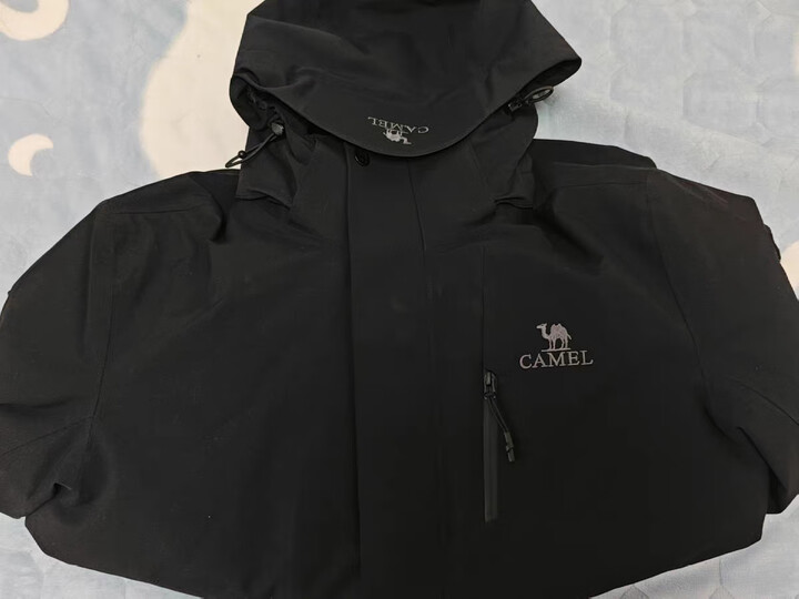 骆驼户外冲锋衣男秋冬新款三合一可拆卸加绒防风服外套女 A1W231121AX,黑色,男女同款 L